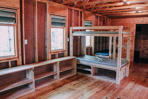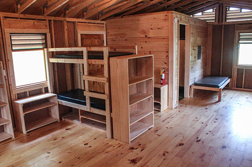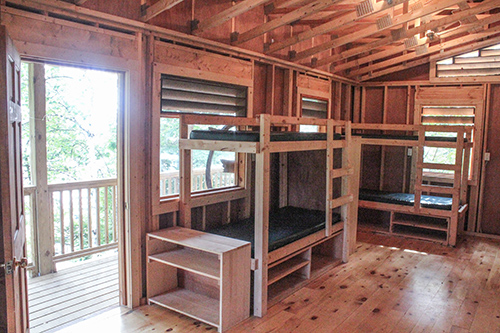 - beautiful spacious camper cabins with electricity and bathrooms with showers and built in bunk beds